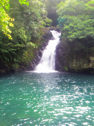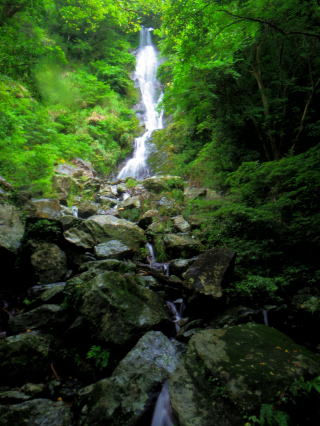大川の支流沿いの林道をしばらく進むとある滝です。