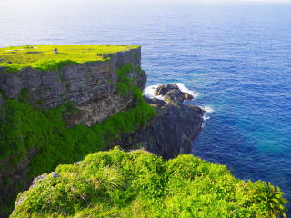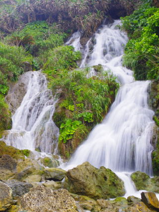 沖永良部島の北側の海岸から流出する潜流瀑です。