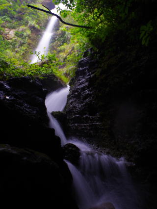 沖泊海浜公園の山手側の断崖から流れ落ちる滝です。